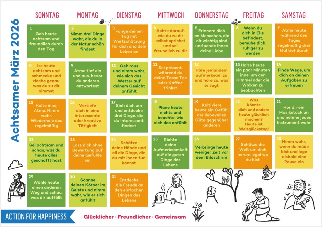 Lass dich täglich durch den Aktionskalender inspirieren, lade ihn dir herunter und teile ihn gerne mit deiner Familie und deinen Freunden.